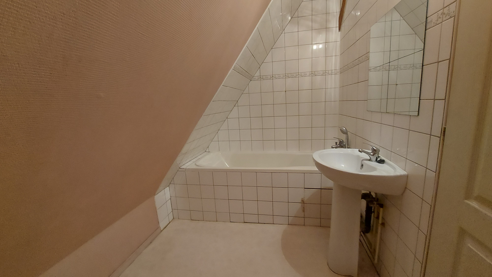Situé dans une maison individuelle, il comporte au rez-de-chaussée, une entrée indépendante avec un escalier qui mène au 1er étage.