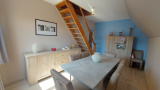 Il se compose au 1er étage, d'un dégagement qui dessert une cuisine équipée, une salle à manger, un salon avec accès balcon, une salle d'eau avec wc et une chambre.