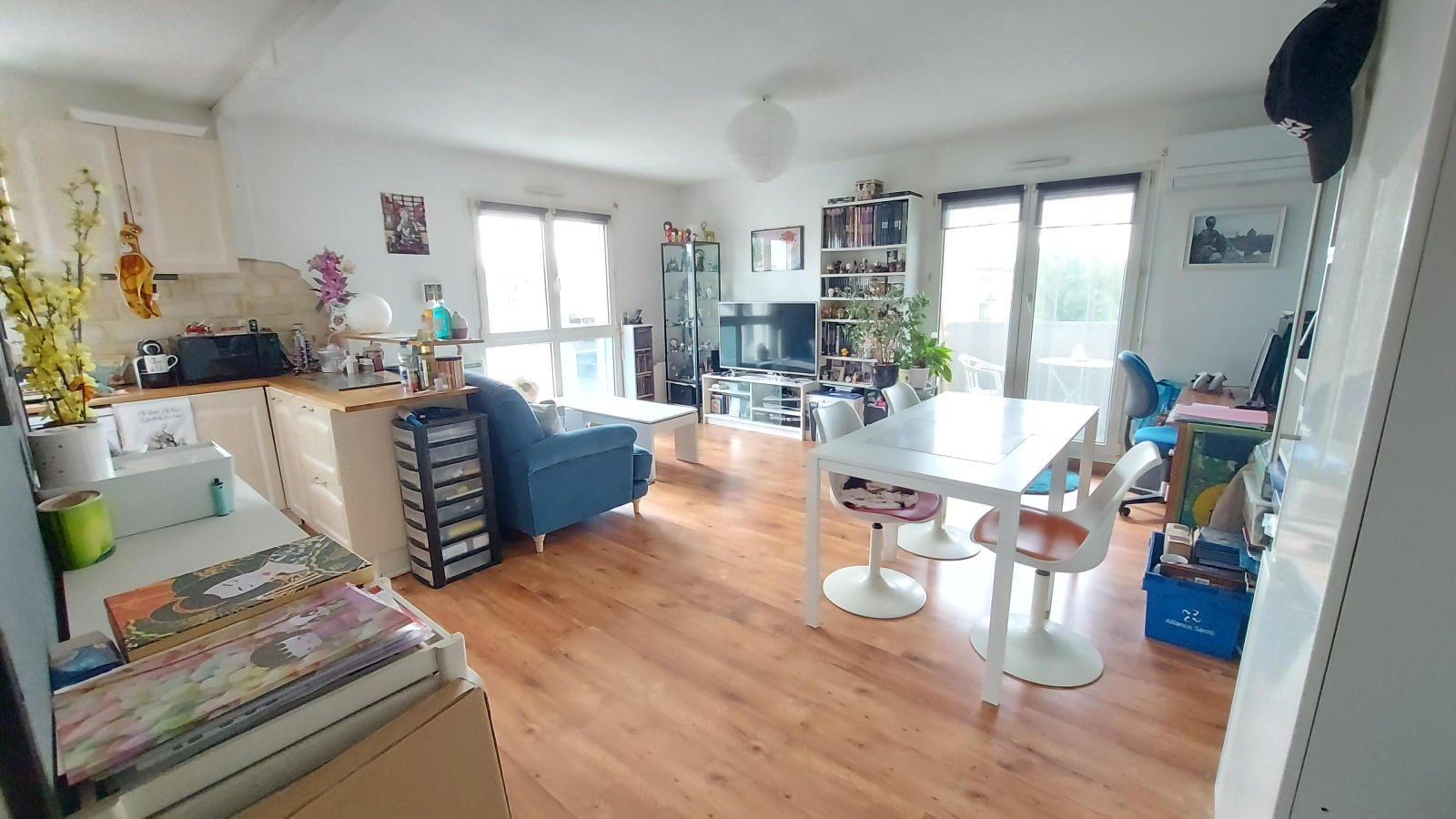 Au 4ème étage avec ascenseur, ce bien offre une entrée avec placards, une chambre avec placards et balcon, une salle de bains avec WC, ainsi qu'une cuisine ouverte sur le salon/séjour donnant accès à un second balcon. Profitez d'un espace de vie bien exposé et baigné de lumière tout au long de la journée.