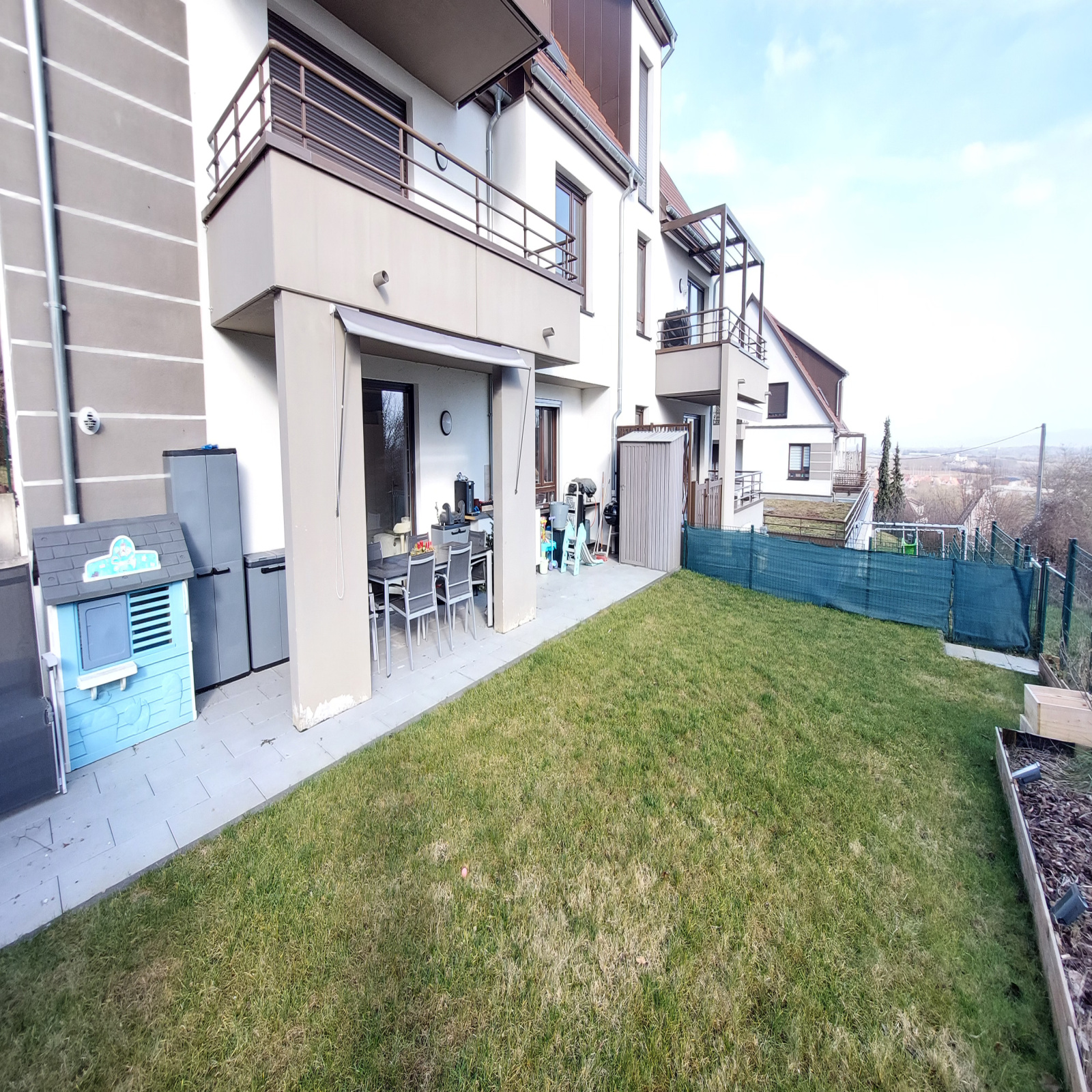 À l’extérieur, une belle terrasse semi-couverte prolonge agréablement l’espace de vie et donne accès à un jardin entièrement clôturé, parfait pour profiter des beaux jours. Le tout bénéficie d’une vue dégagée sur les vignes et la plaine d’Alsace, un véritable havre de paix.
