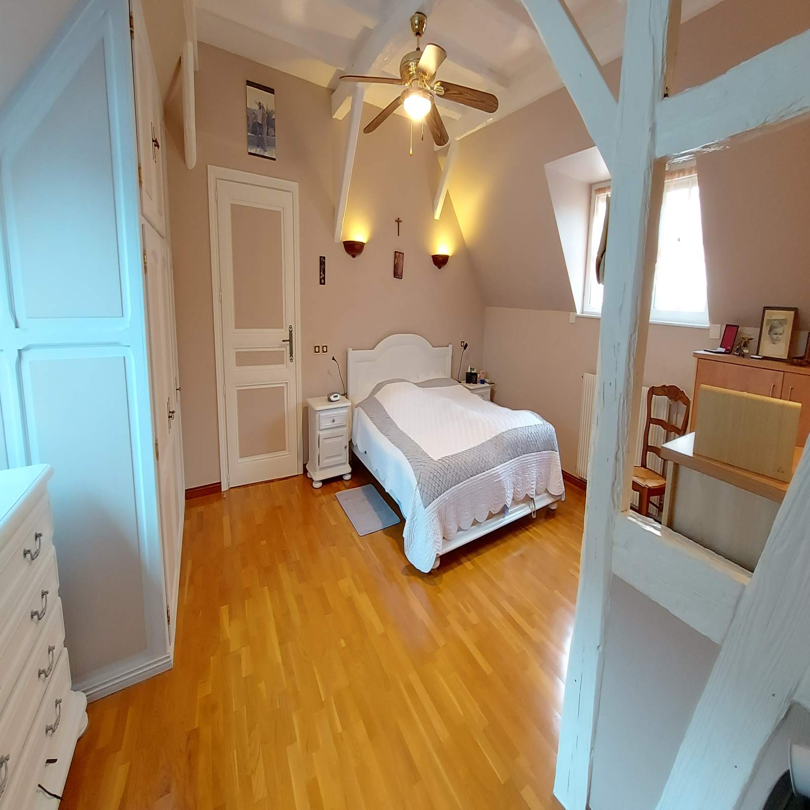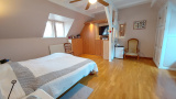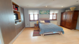 Au 1er étage: un palier avec coin bureau, un wc avec lavabo, une grande chambre de 25m² avec placards, une chambre de 13m² en enfilade avec une chambre de 25m². A côté de cette chambre, un grenier pouvant devenir une 4ème chambre.