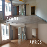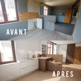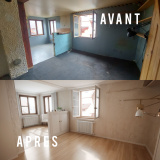 A l'étage une pièce de vie, une pièce (ancienne salle d'eau avec wc et douche), une chambre et un grenier.