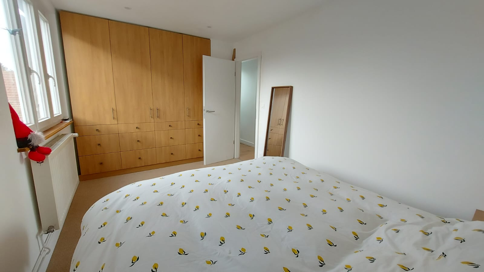 À l’étage, un palier dessert trois chambres dont une avec dressing ainsi qu’un wc avec laves mains.