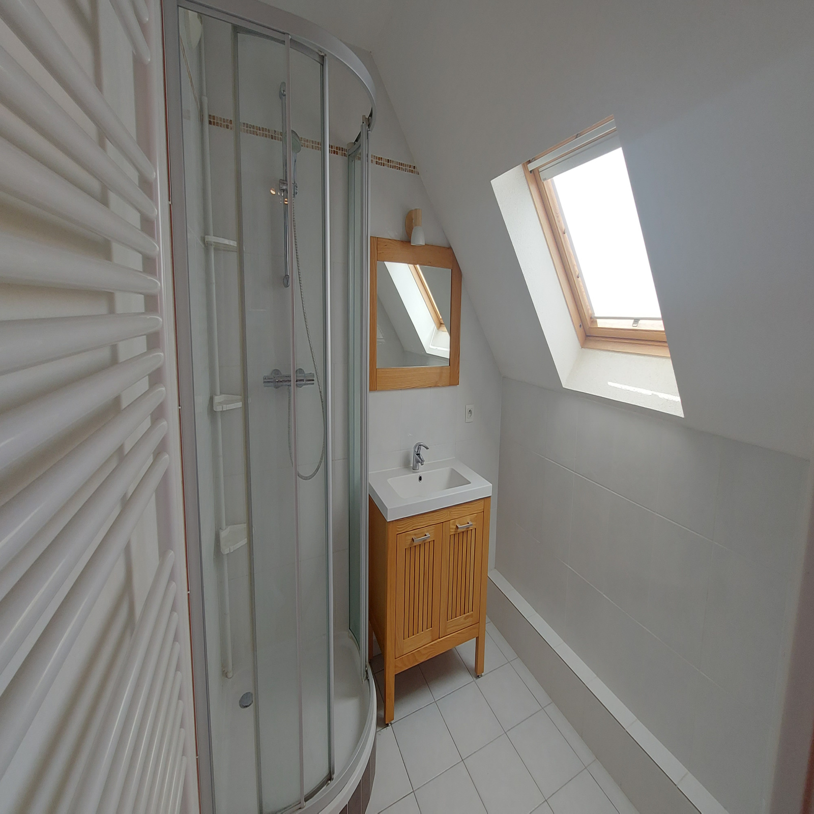 Il se compose: d'un hall d'entrée avec placards, une chambre avec accès à une salle d'eau avec emplacement machine à laver, un wc séparé avec lave-mains, un beau séjour ouvert sur cuisine équipée (sauf frigo) et un beau balcon de 8,30m².