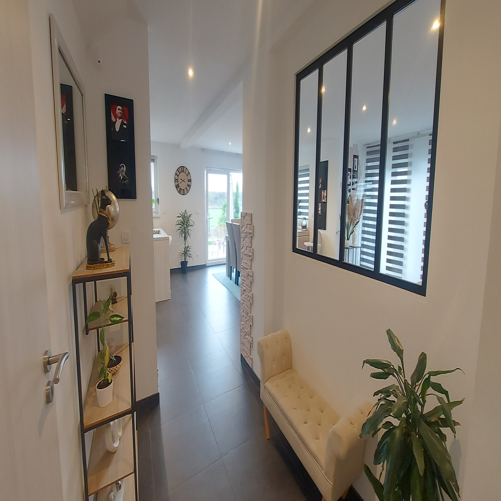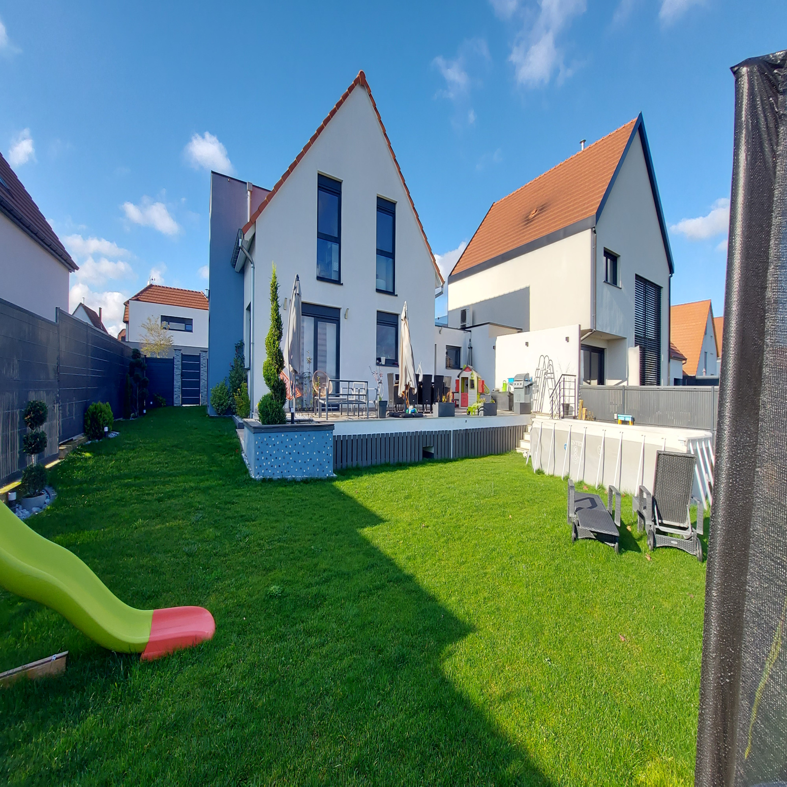 A l'extérieur un garage et un magnifique jardin clôturé et arboré ( bacs de permaculture, arrosage automatique, robot tondeuse...), le tout sur 4 ares 97.