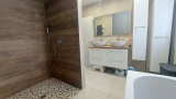 A l'étage un palier dessert un wc, une salle de bains avec baignoire, grande douche à l'italienne et double vasque ainsi que 3 belles chambres dont une avec dressing attenant.